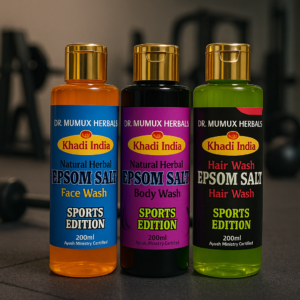 Power through your post-workout recovery with our Combo Products of Sports Edition Hygiene Range of Khadi Natural Herbal. Specially formulated for active lifestyles, this invigorating hygiene combines the soothing benefits of pure Epsom salt with refreshing essential oils to help relax sore muscles, ease tension, and leave your skin feeling clean and rejuvenated.